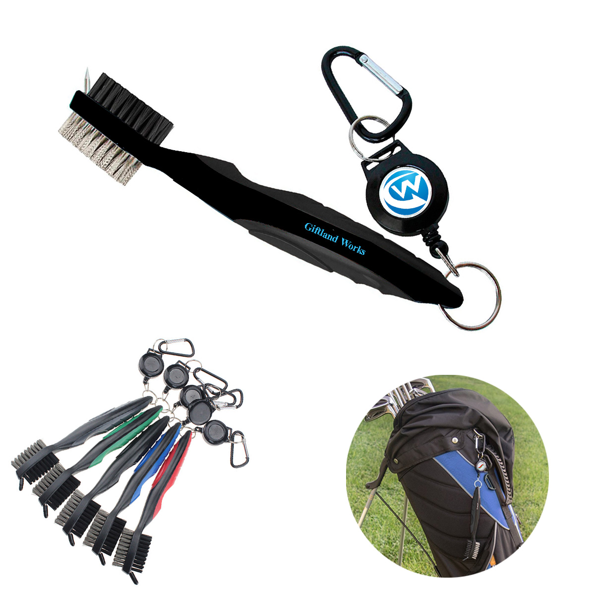 | Feature : | Multi-functional Golf Brush & Club Groove Cleaner Matched with A Carabiner |