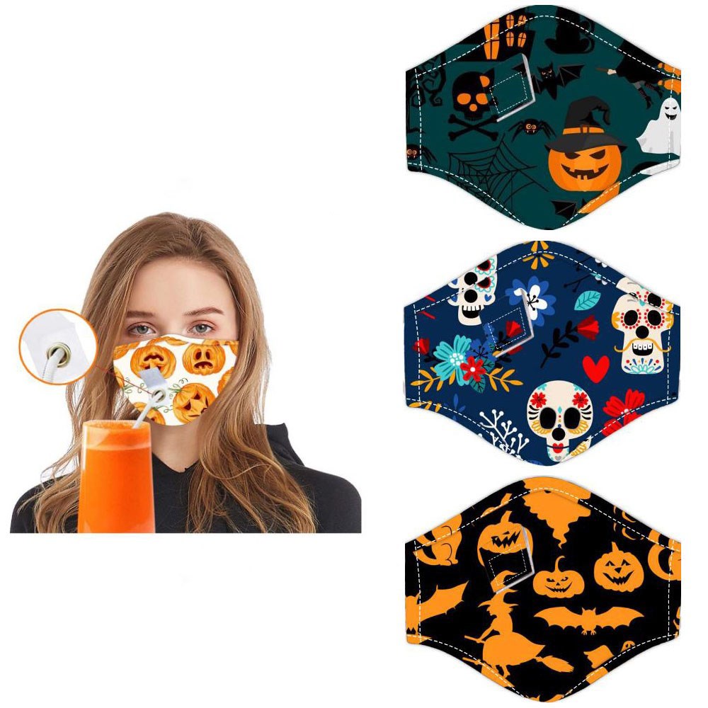 Halloween Creative Adjustable Dustproof Face Mask With Straw Hole