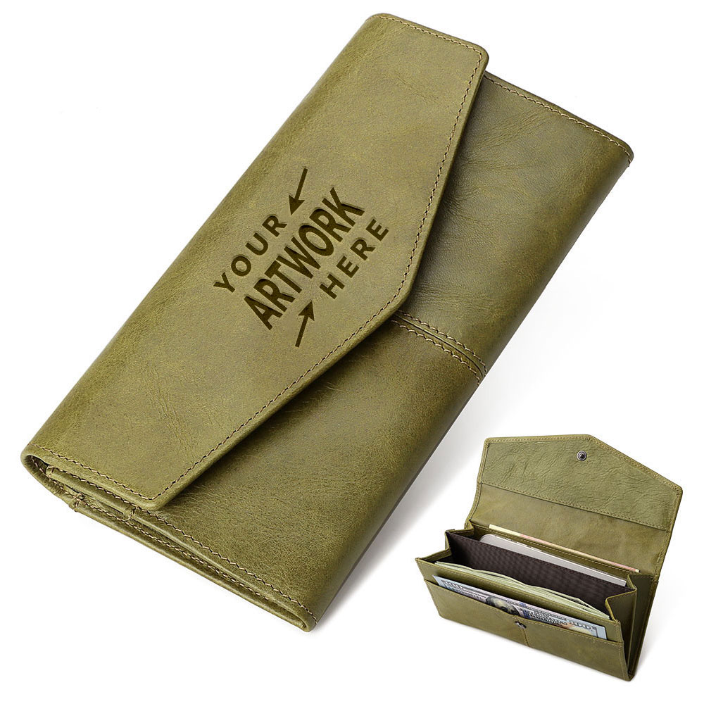 This simple classic long women's wallet is available in three colors, green, red, and black. Each color goes exceptionally well with your outfit. It is one of the essential wallets for every lady. The wallet is made of head layer cowhide leather, which is soft to the touch and has a particularly good texture. Our price includes the embossed logo.