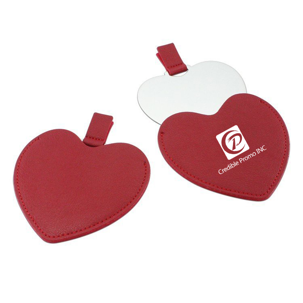 Heart Shape Shatterproof Stainless Steel Mirror With PU Leather Cover