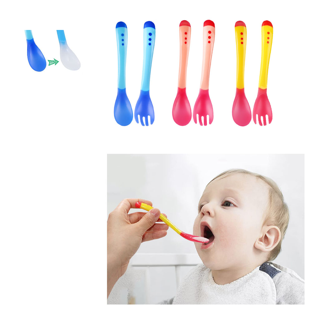 | Feature : | Heat-sensing Baby Feeding Spoon and Fork Set |