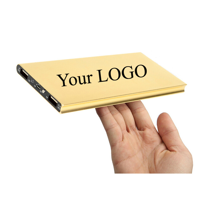 High volume super thin power charger or power bank. With double USB output, LED flashlight and LED volume indicator. Super thin (3/8" thickness) and aluminum wire drawing surface design. High volume 8000 mAh, made from high quality polymer battery. It's the suitable size 6"X3" to put it into your bags, ideal and popular promotional item. Can charge most of your portable electronic devices such as i Phone, i Pod, Samsung phones, Android smart phones, regular mobile phones, digital cameras, etc. Each full loading can charge your I phone 4 or 5 more than three times. Recharge more than 500 times. Many colors and your customized LOGO is available.