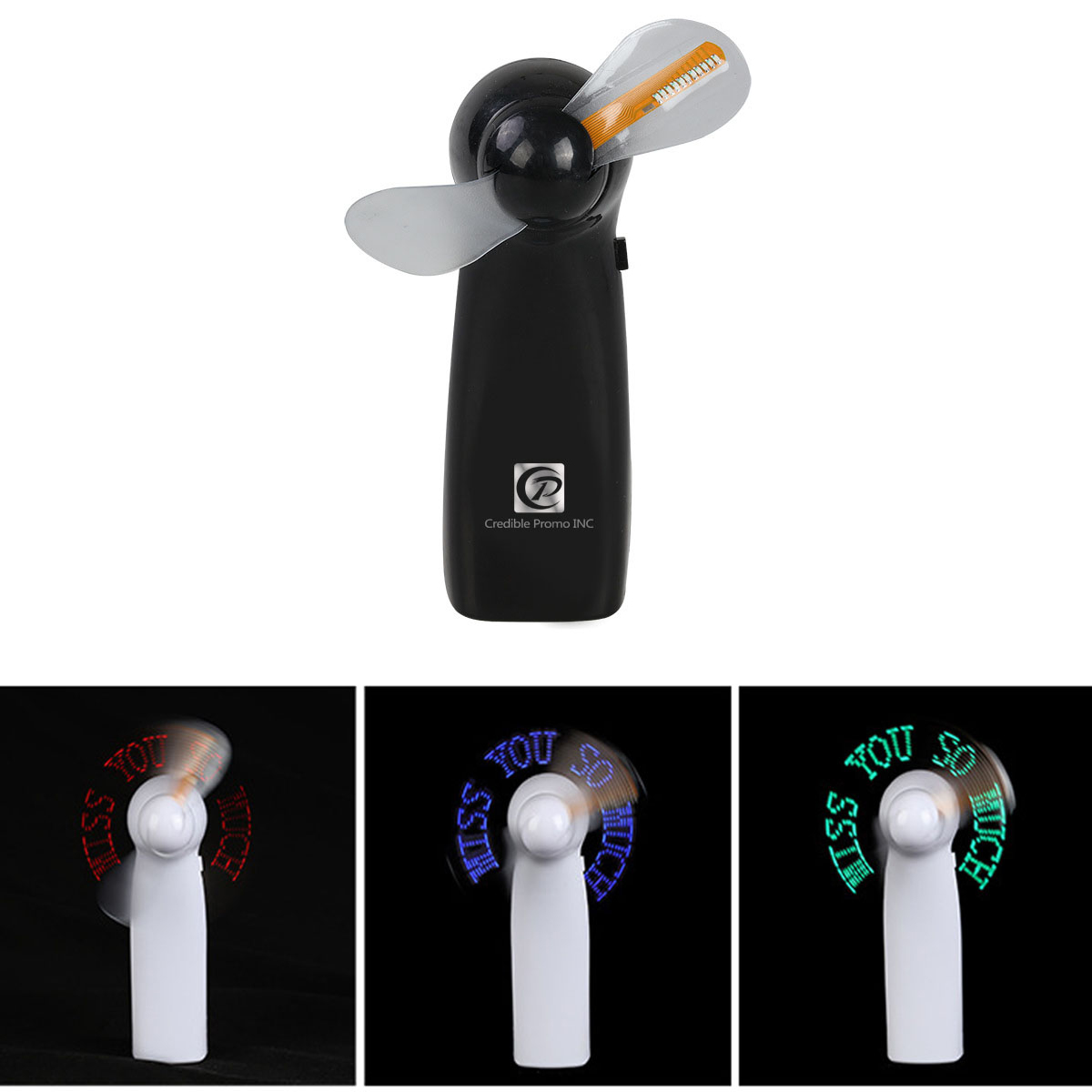 Creative LED flash support customization of your own text, pictures, when the other open the fan, not only blowing a comfortable and refreshing cool air, but also you want to let the other people see the text and pictures. Independent switch design, suitable for use in a variety of occasions, the switch is simple and convenient. Made with ABS and PVC.
