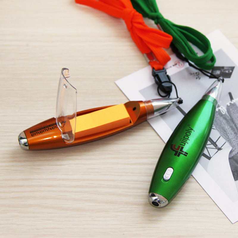 | Feature : | Plastic LED Light Pen With Inserted Note Pad And Lanyard. |