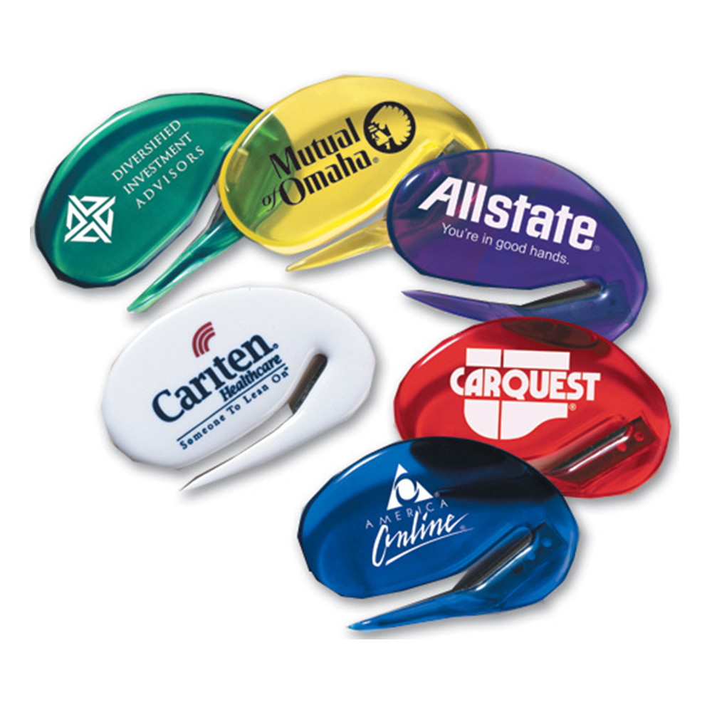 Simple, safe and efficient tool for opening letters, envelopes & packages. Insert blunt-tipped guide under envelope flap at corner and slide cutter along edge. Recessed safety razor slits top edge of flap, reduces risk of accidentally cutting contents. Stainless blade stays razor-sharp through hundreds of cuts. Your LOGO or artwork can be imprinted on it.