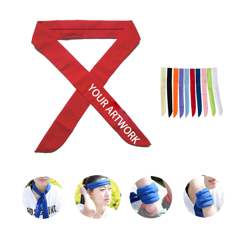 New arrive ! This cooling scarf is made of high quality polyester cotton and eco-friendly ice crystal. When you are ready wear it, put it into water a few minutes, the ice crystal will absorb water and expansive, wear it your neck, head, wrist, ankle, you can feel very cooling, and the cooling can be keep whole day at least. It is reusable and carrying easily. A stitching in middle of scarf, it can keep ice crystal well-distributed. Many colors can be provided, and your great artwork is welcomed. Suit for outdoor, working, promo, students etc. Looking forward to your order !