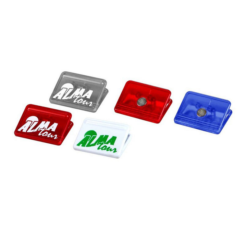 Magnetic Memo Clip Holder, made from PS. High intensity magnet with strong holding power. Great for papers, snack bags, memos and so on. Ideal promotional item with large exposure for your company message. Many colors for your option.