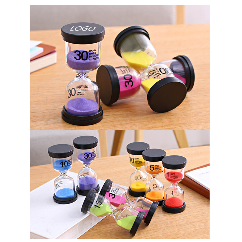 Mini sand clock or sand timer, made of plastic and glass. Individually packaged in a gift box. Several sand colors are available. Sand color: blue, pink, purple, red, green and yellow. We have 10 minutes, 15 minutes and 30 minutes, for your choice. Our list price is based on the price of 10 minutes, welcome to inquiry us for other minutes. Your logo can be printed on the top.