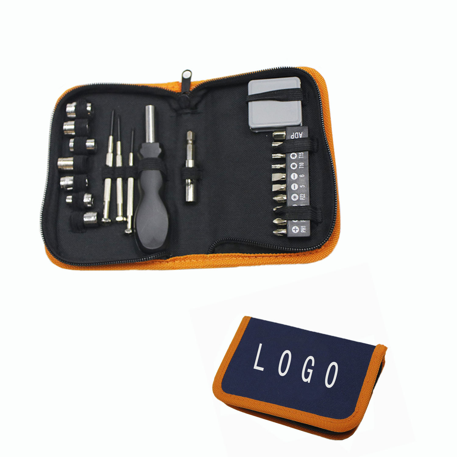 Household Tools with Bag is good-looking and useful. A careful selection of the most important tools for basic household repairs, crafts and DIY projects. High quality tools are neatly organized in an attractive zippered carrying case that is glamorous on the outside and chock-full of tools on the inside. The case is pretty enough to hold like a purse, yet sturdy enough to throw in the trunk of the car. Logo is welcomed.