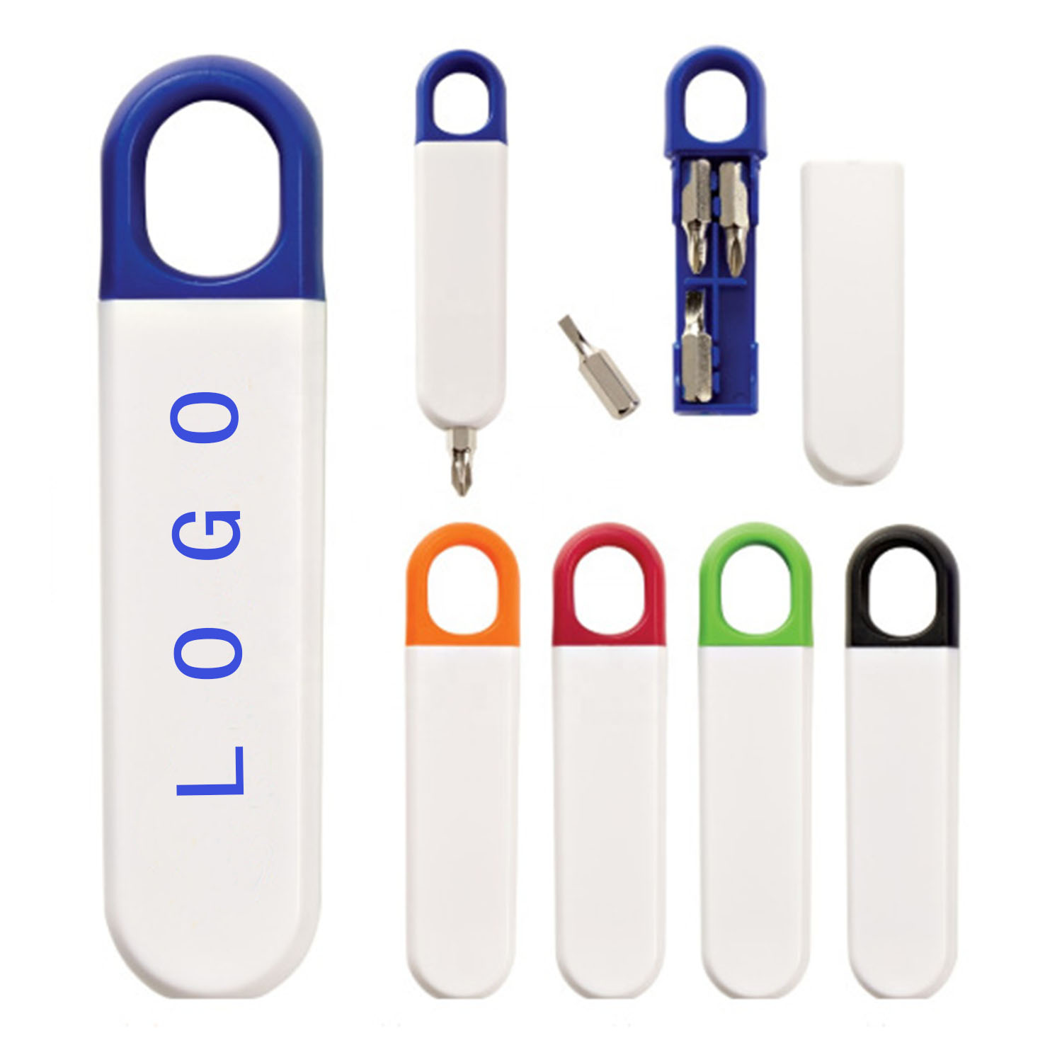 This small pocket screwdriver set which has 4PCS bits. The outer housing acts as the screwdriver head and has a magnetic port to hold the selected bit in place, replace it easily and connect to the handle. It is an excellent choice for a custom promotional gift at conferences and events or to sell as a fashion item in retail stores. Logo is welcomed.