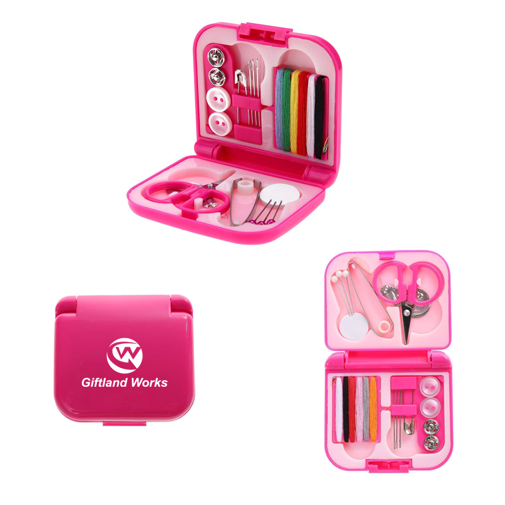 This sewing box is made of sturdy plastic and metal, durable for use. This box includes buttons, needles, pins, thread, scissors, which can meet your different needs for sewing. Particularly suitable for home and travel use. This compact storage box is designed to keep everything in its place and is small enough to fit easily in your pocket, purse, briefcase or luggage. Your LOGO or artwork can be imprinted on it.