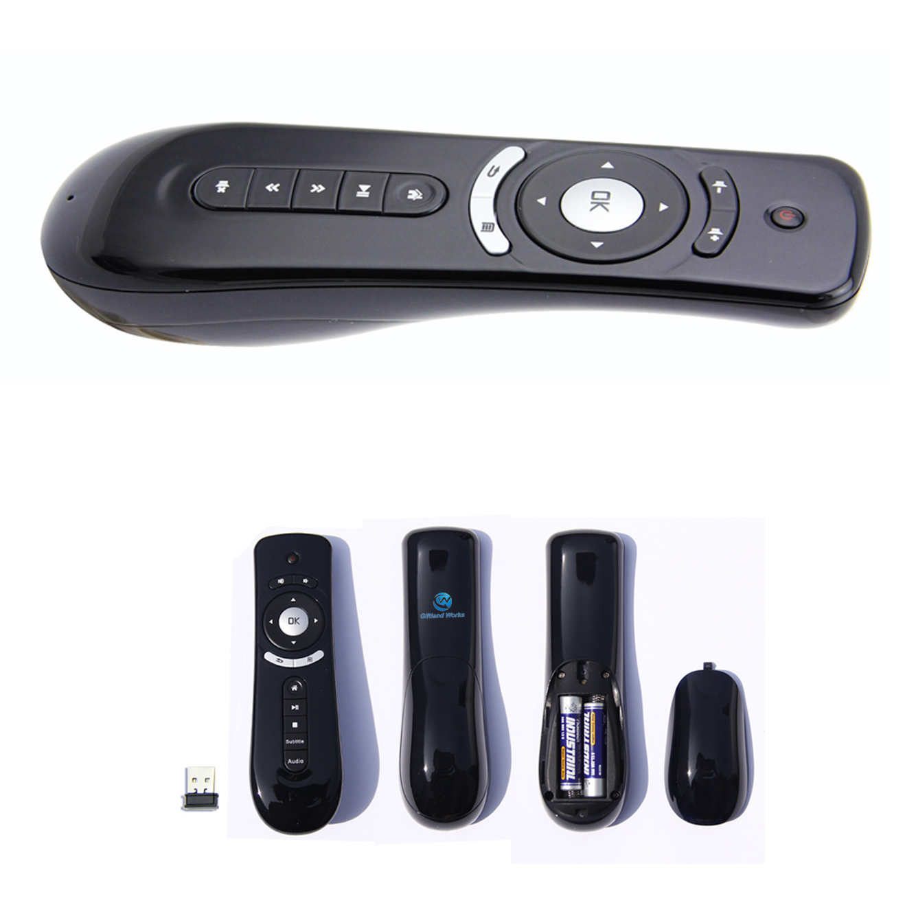 Professional wireless mini remote & mouse & 3D motion stick combo. Anti-shake algorithm. It supports many basic motion sensing games. 2.4GHz wireless connection, up to 10m operation distance. Universal Remote USB Receiver Real Plug and Play. For Devices: PC, Smart TV, Set-top-box, Android TV Box, Media Player.