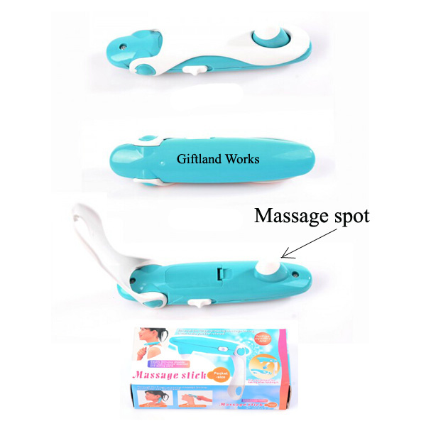 Let this mini neck massage stick relax your neck. This neck massage stick is made from smooth plastic, powered by the inside motor and batteries. Mini size: 5.3" length. Portable and folding design. You can put it in your handy bag easily, relax your neck as the finger-pressing massage feeling. Great promotional item for the theme of health care and fitness.Your customized LOGO can be imprinted on the body of neck massage stick.