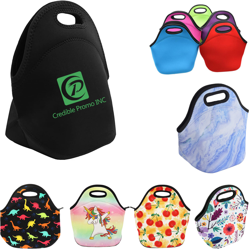 The lunch totes are made of thick neoprene material, can keep food cold or warm for a few hours. The heavy duty zipper ensures your lunch bag can be open and close smoothly even when it's full. The flat bottom will keep your lunch box and water bottle upright and will help you to prevent spillages. Features soft handles for carrying comfort, great for everyday use. Easy to clean, no worry about spills. When it get dirty, simply throw it in your washing machine. Durable neoprene allow for many times of machine washes.