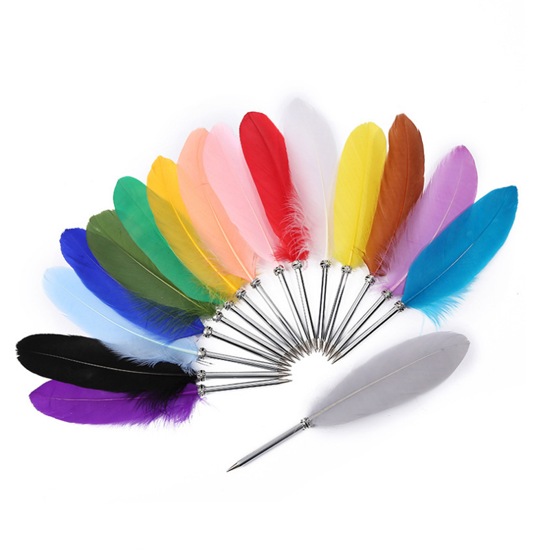 Made from natural swan feather and the ink color is black. Natural feather, vary in every texture, shape, size, forms with no duplication, both sides are asymmetrical feathers. After rigorous degreasing, sterilization, dyeing, silk processing, the feathers maintaining permanent silky luster and elegant inherent of high quality. Elegant in appearance and appearing demeanor upon writing. Hold such a classical one in hand you would be impressed by its long lasting earning and enjoyment.
