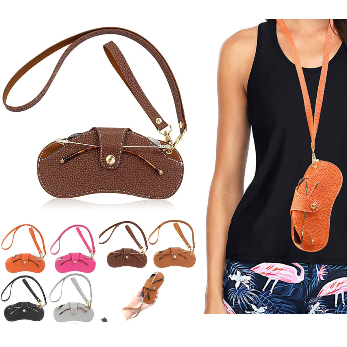 PU Eyeglasses Case Sunglasses Holder Pouch with Wrist Strap and Lanyard