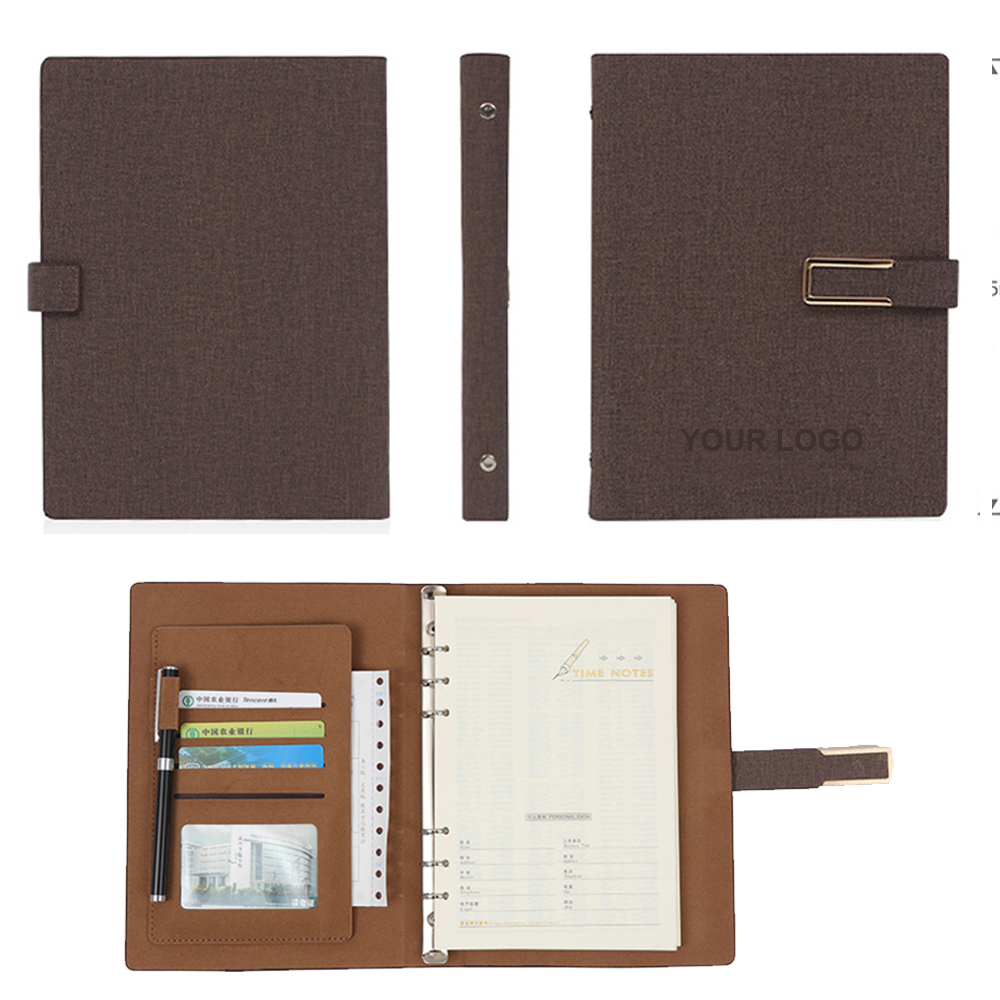Elegant design with good quality 80gsm Dowling Paper, featuring convenient, holds everything you need for a meeting or traveling - pen, business cards, bank cards, receipt, travel tickets. Pages can be resumed, removed, reinserted, and refilled. It will be reordered and customized by your need. It can help make a strong impression in every business meeting.