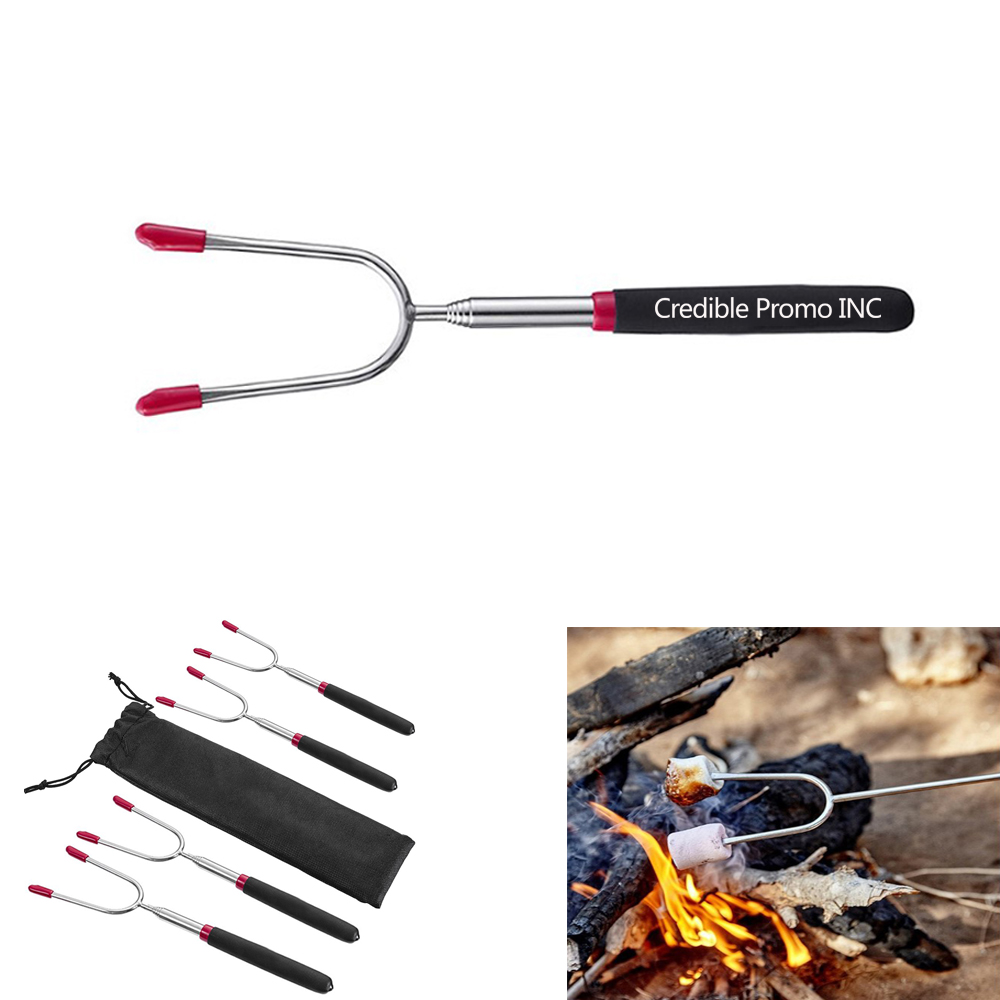 Extend your brand out with this telescopic fork for your next marketing campaign! These handy stainless steel forks feature PVC handles, thumb rollers to rotate food to cook evenly and a shaft that extends to 31 7/8".