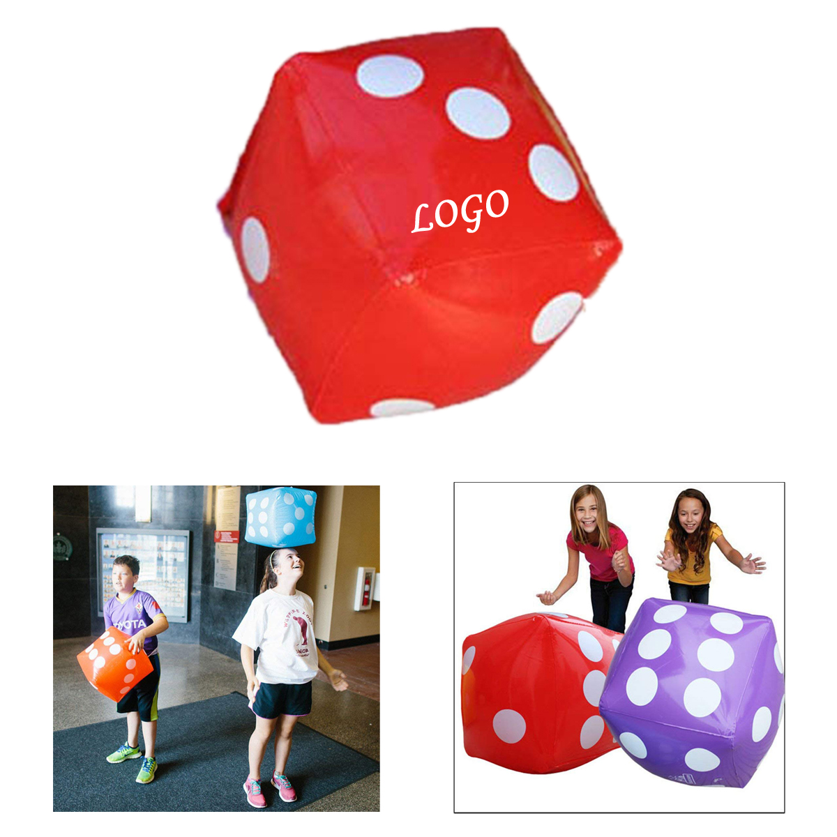 Inflatable dice ball is a good sports toy for kids and adults. Soft PVC ball in bright color. A good ideal for Christmas party interactive activities props and an interactive way to reinforce counting, number recognition and basic math skills, these jumbo dice make learning fun. Size: 12"x12"x12".