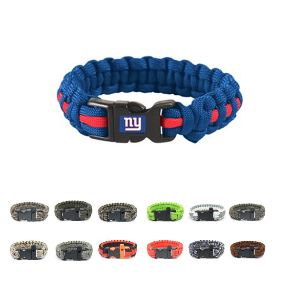 Paracord bracelet or survival strap. Made from strong pulling force strap (over 280 pounds). Unravel the bracelet to deploy the paracord for your use in an emergency. It's not just a stylish to wear this paracord bracelet or survival strap, but also a symbol of strength and survival ability. Your customized logo can be imprinted on the plastic buckle. Lots of colors and styles for your option.