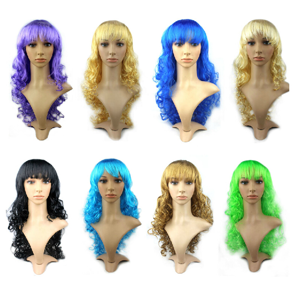 Wear this special wig, you will be surely one of the brightest stars in the party. Synthetic Party Wig, Long Wave Hair style. Made from antiflaming material. Length is around 21.6". Many colors for your option.