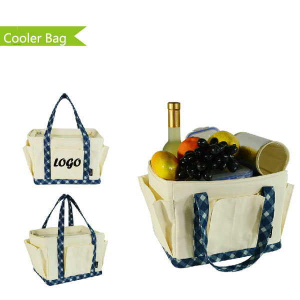 This stylis high quality cooler bag constructed with 10 oz canvas and leak-proof PEVA liner, which keeps your stuff cold or warm for hours, easily to wipe clean. Simple and functional design with 4 big accessory pockets. Great for picnics, park, beach and grocery store. Measures 10" wide x 7.8" deep x 7.8" high.