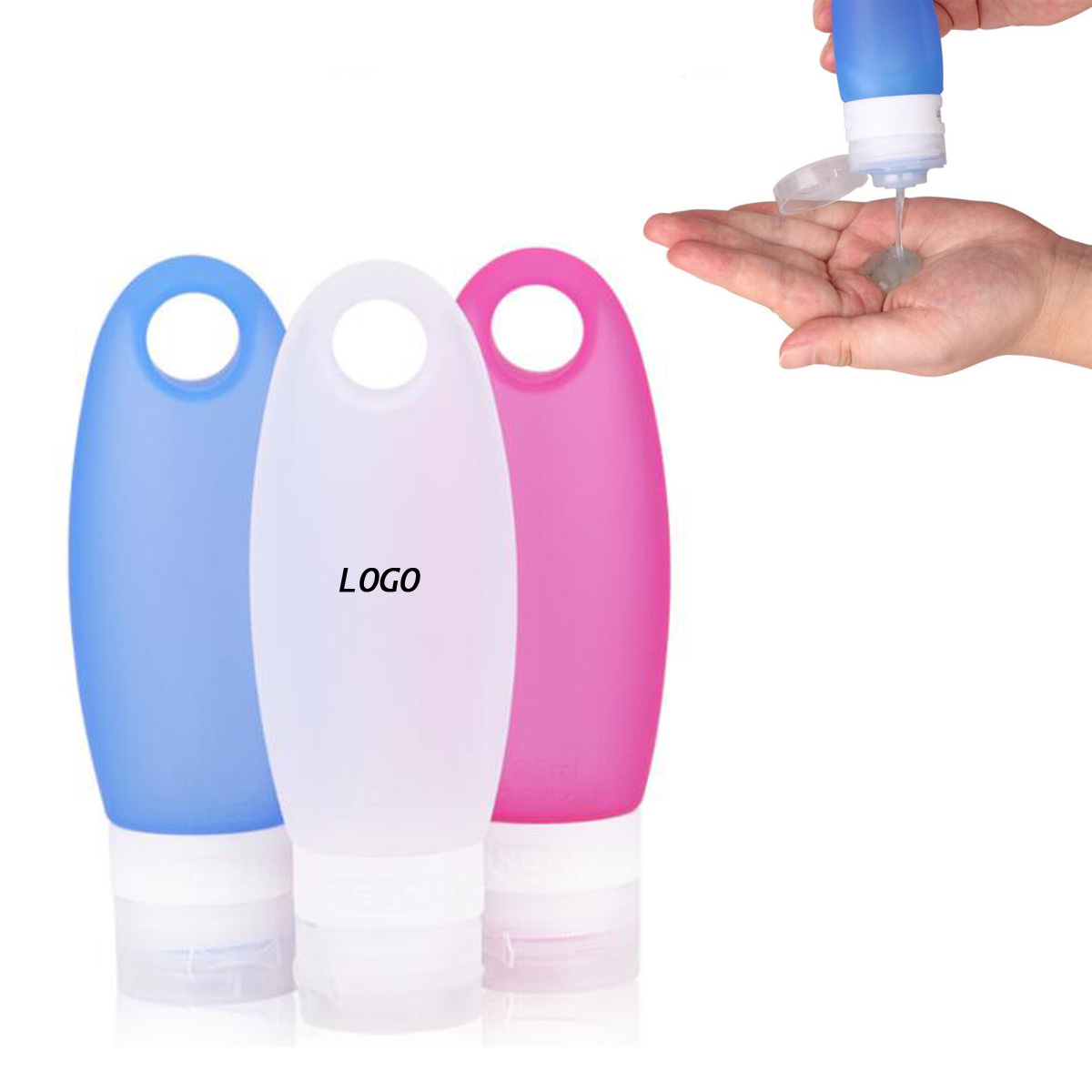 3.3oz silicone containers safe and portable for traveling. It has a rotatable cosmetics collar so you can change the text that shows. Hanging shower caddy, hangs from showerhead or control. Great for gym shower, travel, camping, cruises, the fitness center, or the dorm. Soft silicone body allows you to easily squeeze out that last drop of shampoo.