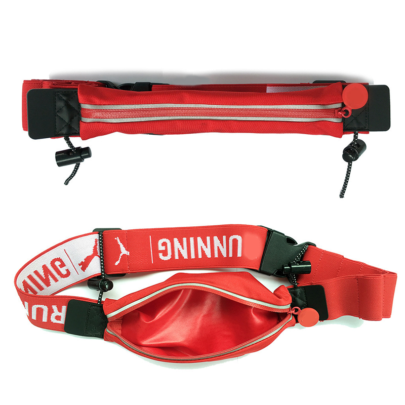 This slim, light weight, waterproof, and bounce free running belt has a stretchy pocket to hold some personal belongings such as cellphone, keys, money, cards, etc in a safe way during your longest marathon, triathlons and other sports activities. Pocket size is 9''x 1.6'' with reflective zipper. Belt with the expandable elastic belt, it is fully adjustable to accommodate waists of 26 to 43inches. There are 2 clips to attach the Marathon race number. 4 loops on the belt are designed to put your energy gels while running. Your logo can be embroided or screen printed. Price on the list includes one color, 1 location screen print.