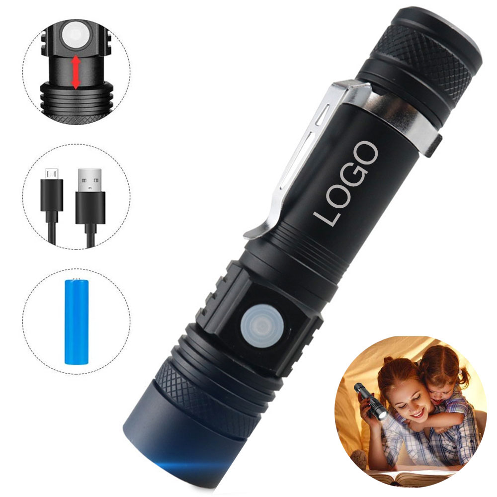 As a professional LED flashlight, it has 3 lighting modes: High, Low, Strobe, and stretch the flashlight's body slowly can adjust focus (zoom in and zoom out) the light easily. It is water resistant, anti-abrasive, skid proof pocket and clip design. It is sized to fit into a pocket, while still delivering high performance. 18650 rechargeable battery included. This rechargeable flashlight can be connect to Any USB interface, like power bank, car charger, computer, and so on. Great for all outdoor activities such as camping, climbing, bicycling, hiking, boating, fishing, and emergencies at home.