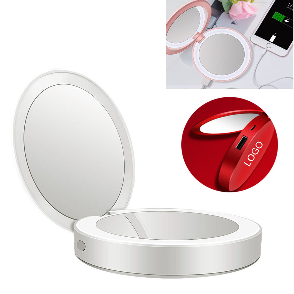 The compact and lightweight design makes it perfect for slipping into your handbag or taking on your travels. It allows you to comfortably use it in the palm of your hand. 3 dimmable LED lights allow for makeup anytime and in the dark, you can feel confident wherever you are. It is not just a mirror, but can also charge cell phones and other devices. You don't ever have to worry about your phone running out of power.