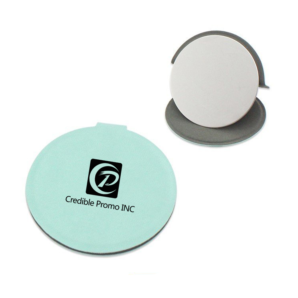 Round Folding Shatterproof Pocket Mirror With PU Leather Cover