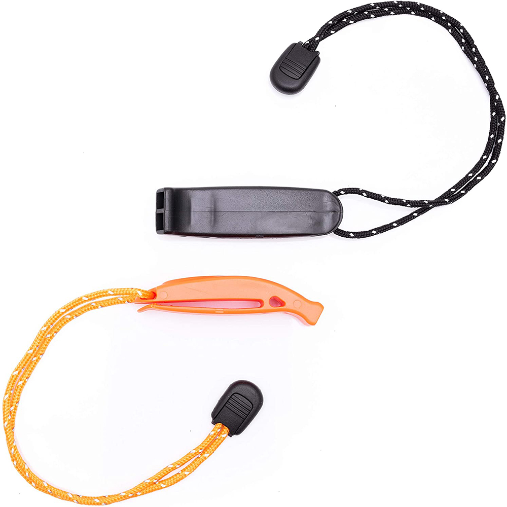 Made from high quality plastic. Durable and compact. Suitable for all weather use, cold or rainy. Never fade and non corrodible, very good whistles to carry in case of emergency. They have a number of attachment options, can easily attach to a backpack, hiking gear, life jacket, kayak PFD, paddle board, meanwhile great for attaching to your belt or shoulder straps. Perfect for Hiking, Boating, Camping, Hunting, Biking & More.