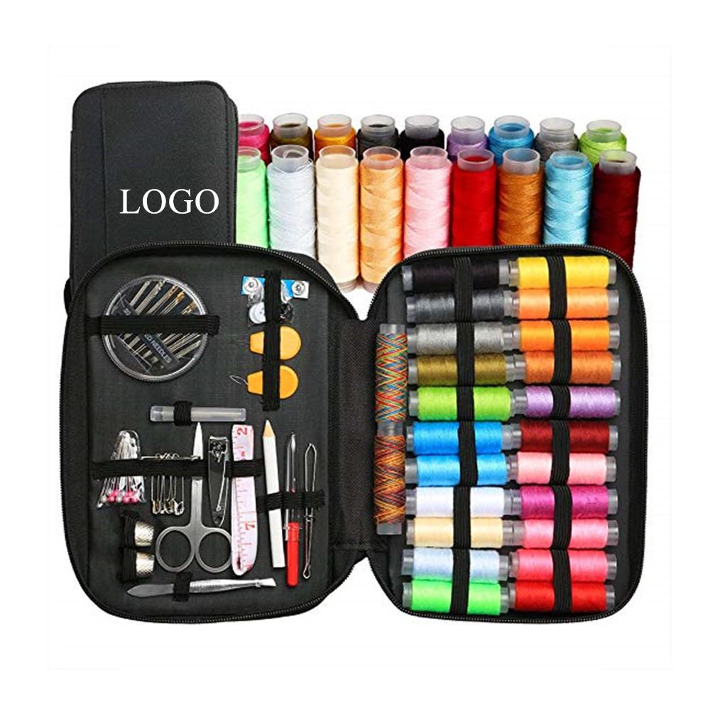 You will find all the necessary tools you need in our sewing kit for a quick sewing and repairing. Various sizes of needles, various colors of threads, buttons, scissors, pins, nail clipper, thimbles and much more. Total 97 mixed repair tools in this package. With a durable zipper bags and straps, all the sewing accessories are compact and organized without loosing down. Your LOGO or artwork can be imprinted on it.