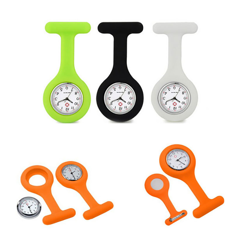 Compact design and watch movement is great for keeping accurate time. Powered by regular button cell watch battery. Brooch pin for attaching to clothing. Great for health workers, nurses and doctors.