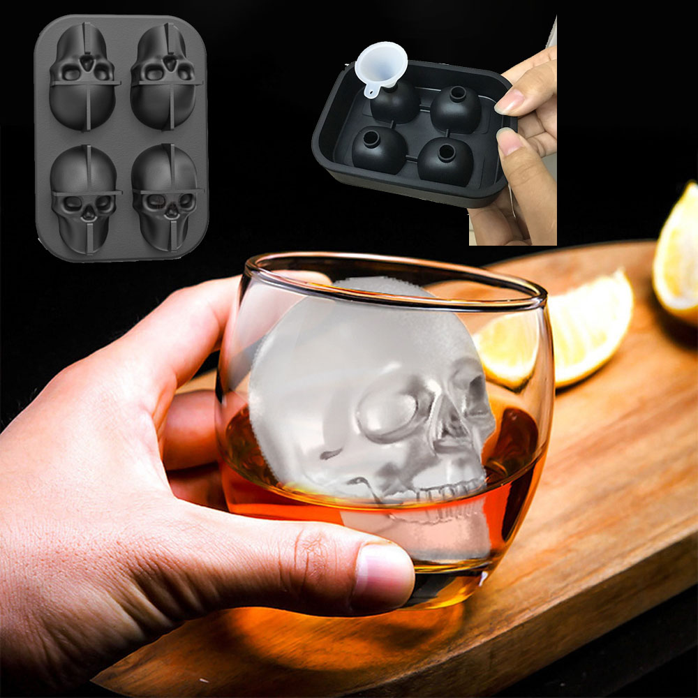 | Feature : | Skull Shape 4-hole Silicone Ice Cube Mold At Halloween |