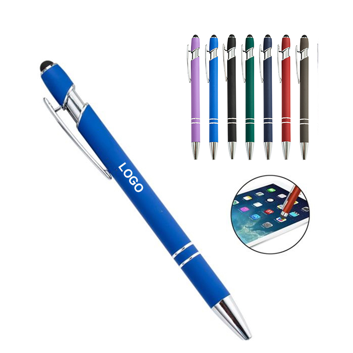 Reach new audiences with this soft touch pen as your next gift! It's made of metal, measures 5.6" L x 0.4" W, has a rubberized finish for added comfort, and a handy stylus designed for increased sensitivity with touch screen devices. This comes available in your choice of black or blue medium ballpoint ink. Add your company name or logo for maximum visibility.