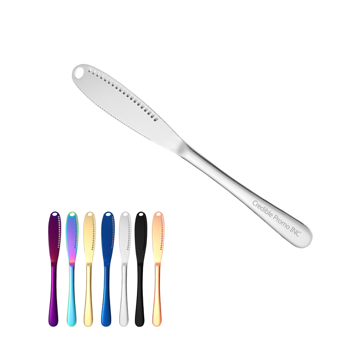 Butter knife has 3 functions to make your life easier. You can use the small holes to curl tiny butter strands and the bigger hole at the tip to scoop bigger strands of cold butter. Or you can flip this handy kitchen tool over and use the serrated edge to slice your bread or butter. Made of top quality stainless steel, butter knife is long-lasting, corrosion-resistant, and dishwasher-safe. Well balanced, easy-grip ergonomic handle makes it easy to hold comfortably. One of the best kitchen gadgets to receive as a gift! Price is for silver color.