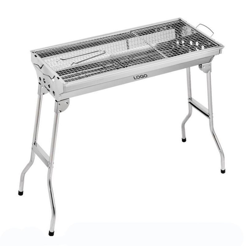 Stand up barbecue grill, made from nontoxic and tasteless stainless steel. Unfolded dimension: Length 28.7" x Height 27.5" x Width 13". Folded dimension: 29.7"x13.7"x7". Foldable design, non-stick finish, portable, durable, easy to clean, easy to assemble. Your great partner for camping, picnic, or other ourdoor activities. Your logo can be laser engraved.