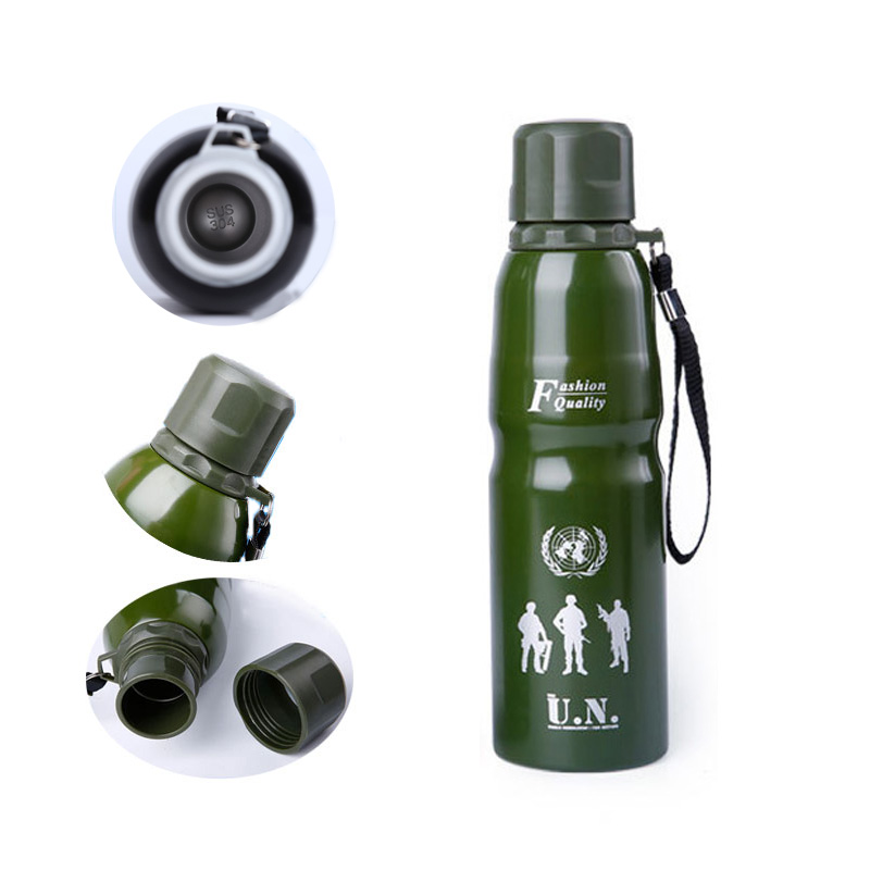 Designed with a hand strap, 17OZ capacity. It is portable for outdoor activities use. Inner material is 304 stainless steel. Keeping a certain temperature.