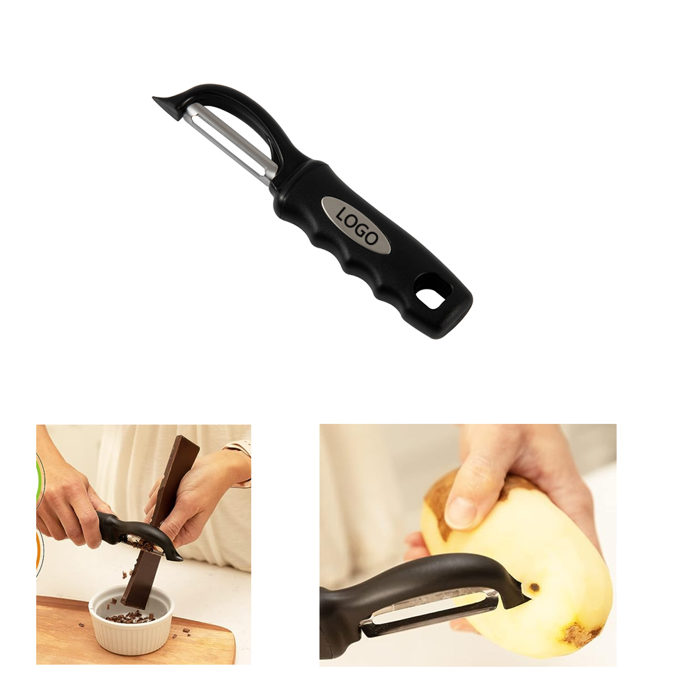 Dual Stainless Steel blades stay ultra sharp and swivel to glide along fruits and vegetables easily. Includes a built-in blemish remover. Soft Grip Handle For Maximum Comfort - The non-slip rubber handle is comfortable for both right and left-handed use and makes peeling enjoyable. Includes hole for easy hanging. The handle can be laser logo. Welcome to consult.