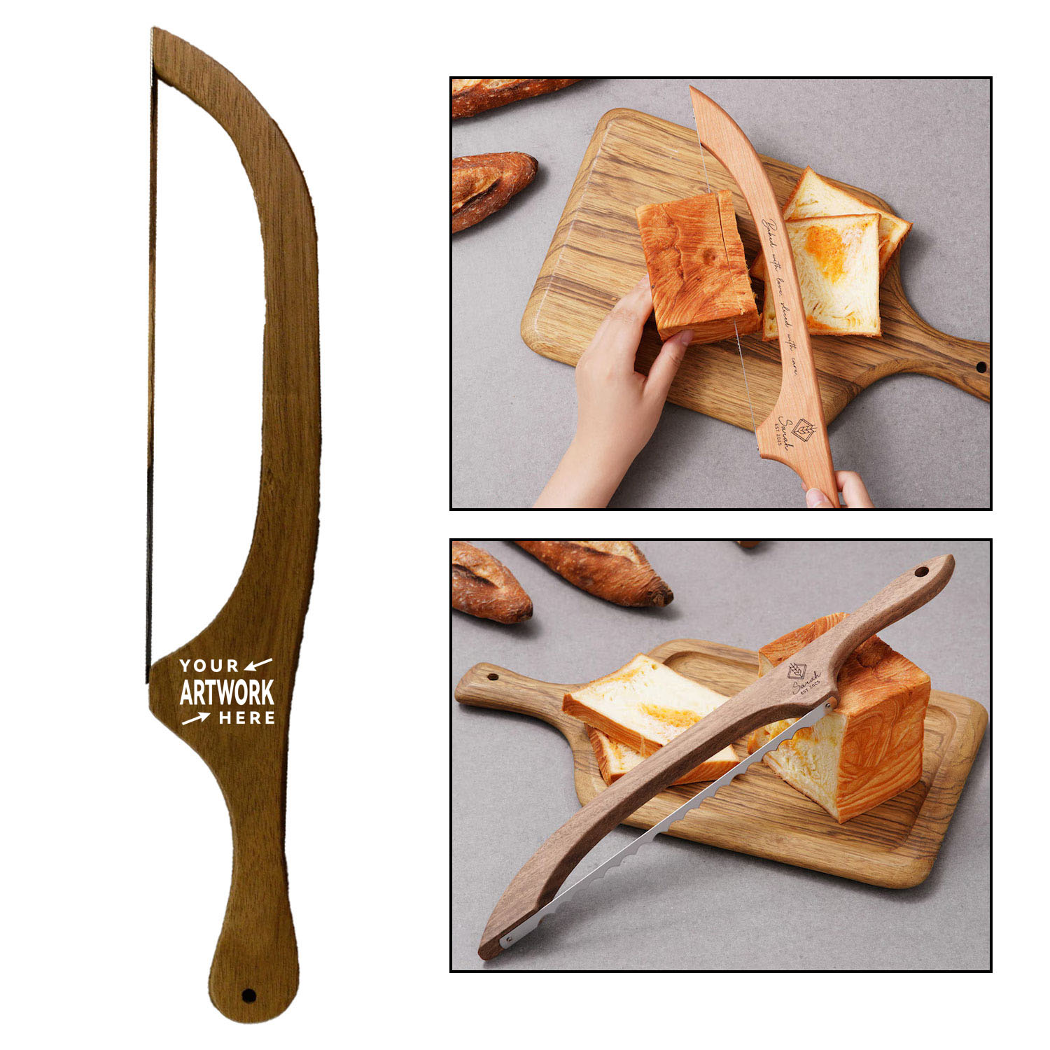 Wooden Bread Knife with Anti-Bend Metal Slicing